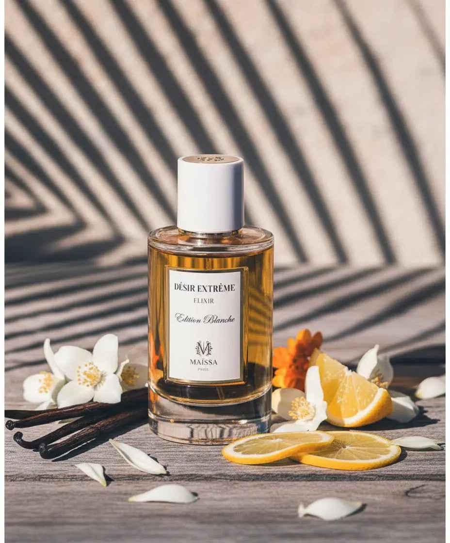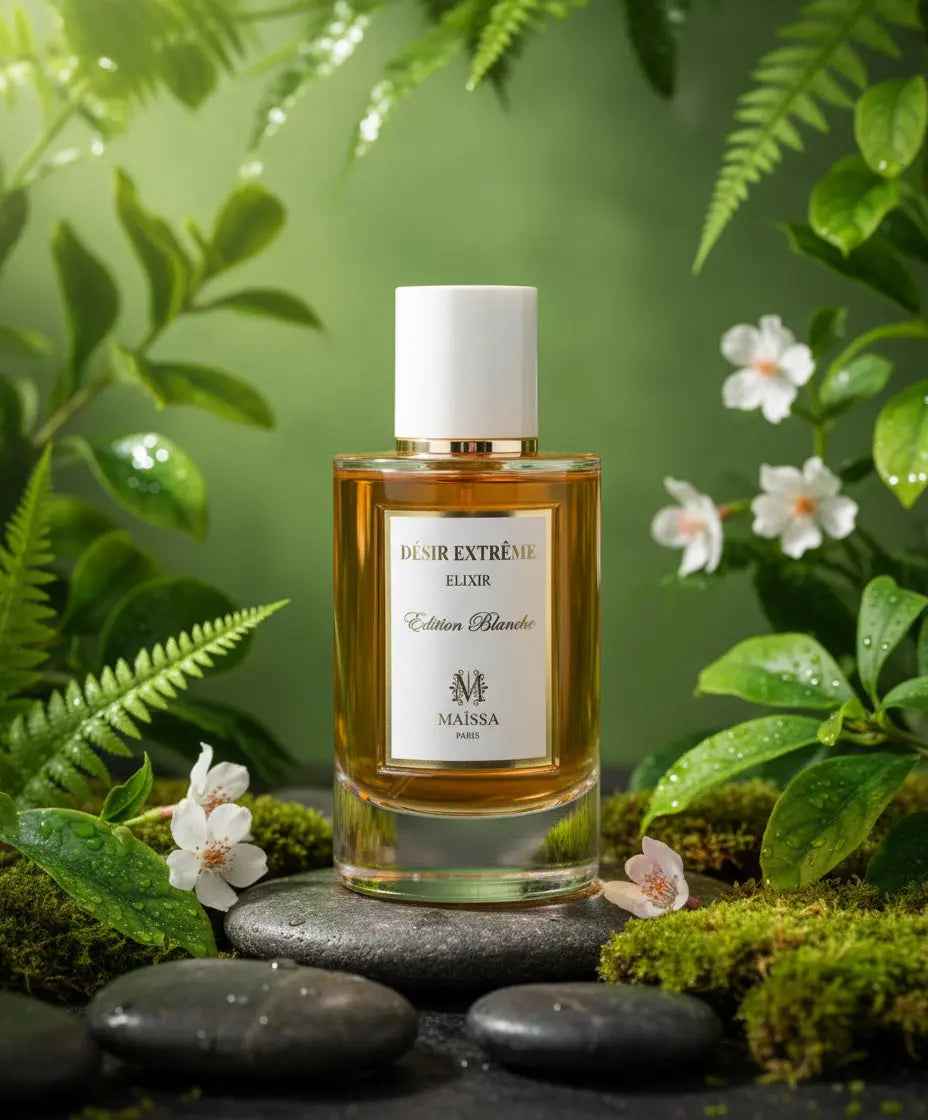 Desir Extreme Eau de Parfum 100ml by Maissa. An oriental gourmet fragrance featuring violet, raspberry, sandalwood, amber, and musk. 100ml bottle. Eau de Parfum concentration.